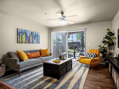 Besides the amazing location of Rio Santa Fe Apartments, there are so many other reasons to choose this amazing community. These great pet-friendly apartments come in three spacious options: one, two, and three bedroom options to fit all your needs. Here you’ll enjoy fully equipped kitchens boasting stainless steel appliances including a built-in microwave, disposal, dishwasher, and electric stove. You’ll also have wood-style vinyl flooring, oval soaking tubs, ample storage, and in-unit washer and dryer hookups.